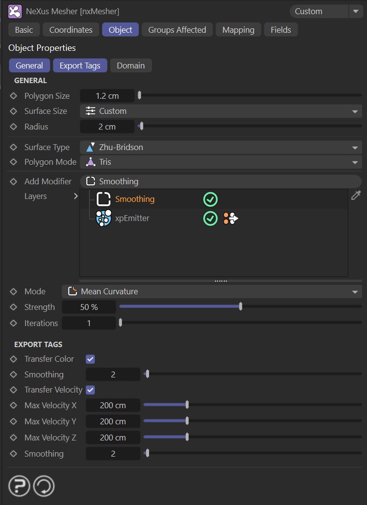 GPU-powered liquid meshing arrives in NeXus with nxMesher. Quickly generate smooth, flicker-free liquid meshes with layered smoothing and multiple mesh types. Output particle color, velocity and emitter IDs for ultimate render-time control and motion blur.